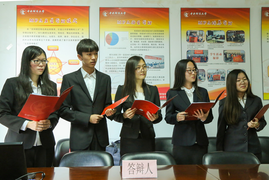 此次验收由学院大学生创新课题评审委员会统一评议,邀请到白云真副教授、陈红霞副教授和周湘林副教授担任评委。验收评审包括项目团队陈述结项报告、评委提问、团队回答评委提问三个环节。各个团队均作了较为充分的结项准备,对项目实施过程、完成情况、项目成果、项目价值和创新点进行一一陈述。评委老师分别提问和点评,对结项报告中存在的问题和不足提出修改建议。