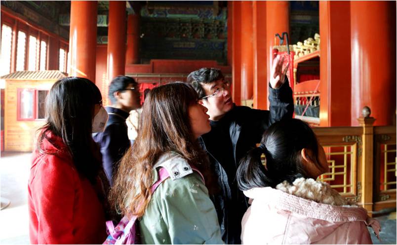 不登高山,不知天之高也;不临深溪,不知地之厚也;不闻先王之遗言,不知学问之大也。本次实践教学活动旨在让学生通过参观孔庙和国子监博物馆,闻“先王之遗言”,知学问之大,鼓励学生树立远大理想。使学生在古代最高教育机构中感受浓厚古典文化氛围,体验中式经典学习理念,让学生在实践中加深对平时课堂知识的理解,构建理论知识和实践感悟相结合的新型知识框架,“人伦日用”。
