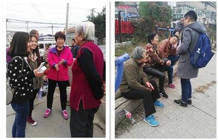20161016日下午,全班同学在基地集合,教师明确任务和注意事项后,五个小组分散调查,老师跟随走访。调查内容为:西沙屯地块的用地现状(5组合作)、道路交通情况(1组)、公共基础设施规模和分布(1组)、绿地景观(1组)、基地历史文化特色、居民情况和管理组织机构(1组)。