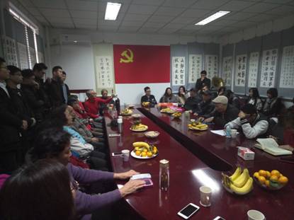 实践教学的第一站是社区千面胡同内的咖啡书店。此时恰逢社区书法班开办十周年,书法班的老人们在此开展十周年总结洽谈会。在社区负责人的接待下,张剑老师和同学们得以与老人们共聚一堂,感受社区文化团体的魅力。会议交流过程中,书法班的领班人、党员模范熊老师对书法班开办十年来的历程进行了总结,并表示练习书法即如同为人处世,以及书法文化作为中华优秀传统文化的博大精深。他还表示虽然班内成员年事已高,但仍然会继续支持和开展书法班的活动。同时,与会的各位老人也就对社区搭建书法班平台的感激、班内成员的真切情谊以及学习书法的深切体会等进行了交流。同学们从老人们的发言中感受到他们矍铄的精神,同时也感受到了社区对居民的人文关怀以及社区文化工作的有效开展。