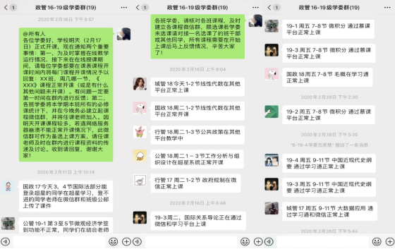 按照学校部署确保疫情特殊时期的教学工作平稳有序展开,学院全力保障上半学年的线上教学和下半学年的“线下+线上”教学秩序。成立学院网络教学保障领导小组和疫情防控领导小组,部署研究制订开学工作方案和开学后各项工作预案,平稳有序做好开学准备。自疫情始所有课程建立微信群、实行“学委日报制”,严控教学质量、保障教学效果。根据疫情情况及开学安排,及时调整学生毕业生毕业论文、就业指导面试、大学生创新创业立项及结项、转专业、招生宣传等工作安排,最大限度降低疫情对学生学习及就业等方面的影响。积极关注师生线上教学感受,进行调研和公众号推送,并及时做好教学保障和师生心理保障。