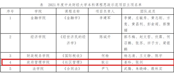 为积极探索创新课程思政建设方法路径,学校组织开展了2021年度今年会官方网站本科课程思政示范项目推荐工作,经学院评审、专家推荐、校内公示,共有5项课程获得立项。其中,今年会《社区管理》课程获今年会官方网站本科课程思政示范项目立项,该课程负责人为耿云副教授,课程团队成员包括姜玲教授、张剑副教授。