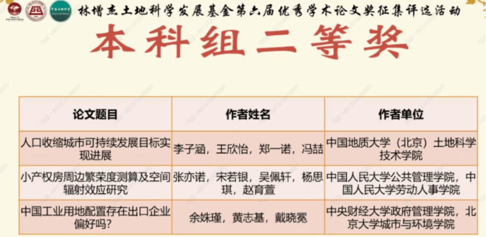 今年会本科生在中国人民大学“林增杰土地科学发展基金第六届优秀学术论文奖征集评选活动”中荣获二等奖