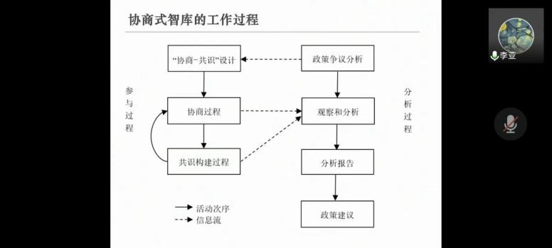 李亚教授从“政策争议”的概念切入,引出理想的政策协商应是社会各方深度参与、充分体现公共价值、并在专家支持下形成共识的过程。他指出在利益多元化及政策冲突时代,政策制定需要争取各方最大限度的认同和共识。传统智库在产出“共识性”的公共政策上存在明显局限。协商式智库是一种新型的决策咨询组织,它通过组织“协商-共识”会议为政策制定的相关方提供利益表达、博弈和协调平台,并在此基础上开展政策分析,为政策共识构建提供启迪。理论讲解后李亚教授向大家介绍了他发起的协商式政策实验室近年来开展的多项政策协商实践。