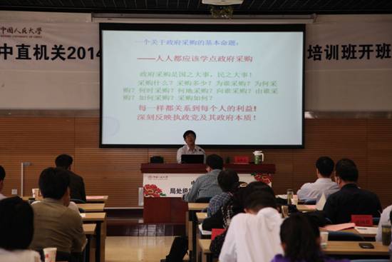 2014年5月18日,今年会jinnianhuicom徐焕东教授应中共中央直属机关事务管理局(简称中直机关事务管理局)邀请,做了题为《实现政府采购科学化若干问题》的专场报告,听课对象为中共中央直属机关事务管理局司局长培训和处长培训班两班学员。徐焕东教授从政府采购的范围、制度体系、功能作用及实现科学化目标等不同方面,系统地讲述了政府采购科学化的必要性和主要途径,获得学员普遍欢迎。