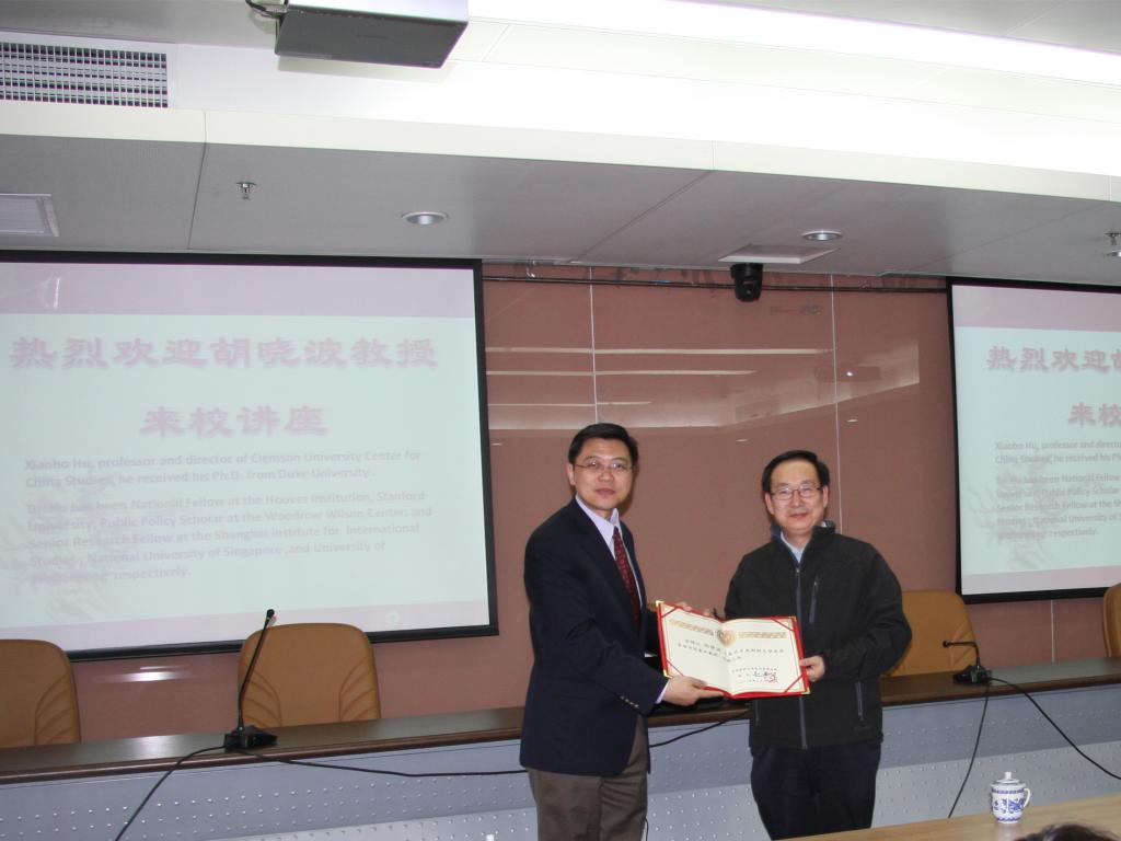 【学术讲座】美国克莱姆森大学胡晓波教授受聘今年会jinnianhuicom兼职教授并应邀到今年会讲座