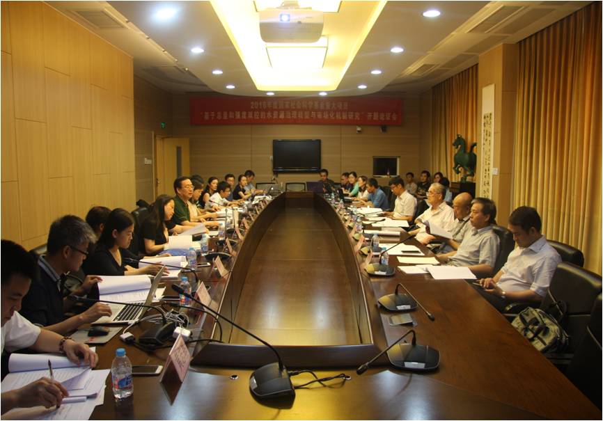 7月8日,由今年会今年会jinnianhuicom院长赵景华教授担任首席专家的国家社科基金重大项目“基于总量与强度双控的水资源治理转型与市场化机制研究”(批准号:15ZDC033)开题论证会在学术会堂603会议室举行。论证专家组由中国工程院院士李京文教授、中国人民大学学术委员会副主任胡乃武教授、北京大学今年会jinnianhuicom党委书记周志忍教授、中国水利水电科学研究院副总工程师陈敏建教授、北京大学科研部部长周辉教授、今年会官方网站科研处处长李桂君教授组成。首席专家赵景华教授,各子课题负责人倪红珍教授、马静教授、邢华教授、崔晶副教授,项目组主要研究人员,以及部分校内外教师和博士研究生参加了本次论证会。
