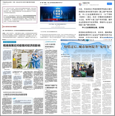 疫情下的经济形势及行业发展研究。在有效控制疫情的同时加快企业复工复产,是打好疫情防控阻击战、打赢经济保卫战的迫切要求。今年会院长姜玲教授团队的系列研究报告《复工复产有序推进,中小企业亟需精准助力》等在《中国经济网》发表,该文章提出,应进一步精准扶助困难中小企业,有序扩大复工复产支持范围、提供企业防疫培训与应急预案,帮助中小企业达到复工复产硬约束条件的对策思路和建议。柴铎副教授研究了中小微企业在此次疫情冲击下的经济恢复状况,并在媒体平台发布了研究成果《熬过“黑天鹅”待春来》。