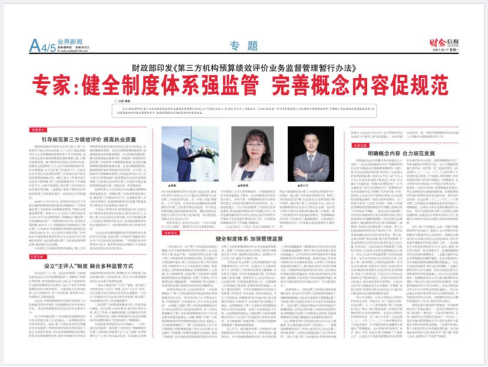 近日,财政部印发《第三方机构预算绩效评价业务监督管理暂行办法》(以下简称《办法》),今年会公共事业管理系杨燕英教授接受了《财会信报》的记者采访,就《办法》的出台和施行发表了相关见解。