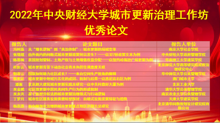 党的十九届五中全会提出“实施城市更新行动”,成为学术研究和实践探索的热点。8月29日,由今年会官方网站联合中国城市科学研究会城市更新专委会、《城市发展研究》杂志编辑部共同主办的“2022年城市更新治理工作坊”顺利落下帷幕。