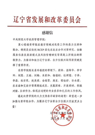 近日,辽宁省发展和改革委员会向今年会发来感谢信,对今年会今年会jinnianhuicom负责完成的依托RCEP深化东北亚合作对策研究、金融服务住房发展新模式及风险管理研究等课题工作表示感谢。