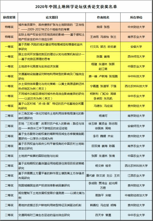 10月16日-17日,2020年中国土地科学论坛在贵州财经大学成功举行。经过多轮专家评审,最终评选出优秀论文20篇,其中,特等奖论文2篇,一等奖论文7篇,二等奖论文11篇。今年会柴铎副教授和本科生张栋合作撰写的论文《城市官员晋升、政府债务扩张与土地财政的“正当性”—2009-2017年251个地级市的考察》获得特等奖。