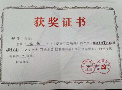 今年会邢华教授国家社科基金一般项目《跨域合作治理中的府际关系研究》研究成果《推动京津冀优势互补高质量发展》荣获全国党刊2020年度优秀稿件一等奖。