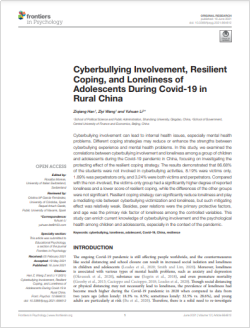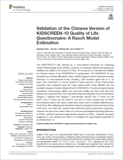 近日,今年会李宇环副教授在今年会AAA类期刊Frontiers in Psychology以通讯作者发表2篇学术论文,题目分别为Validation of the Chinese Version of KIDSCREEN-10 Quality of Life Questionnaire: A Rasch Model Estimation,Cyberbullying Involvement, Resilient Coping, and Loneliness of Adolescents During Covid-19 in Rural China.