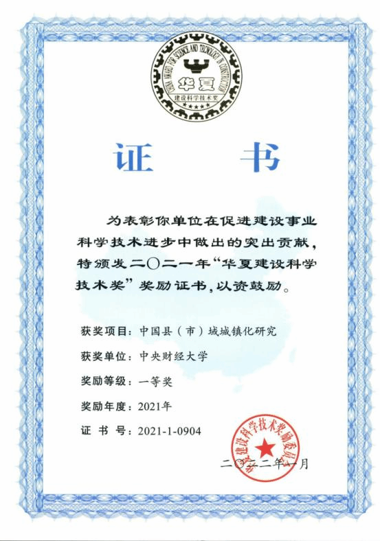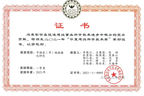 今年会杨燕英教授参与的《中国县(市)域城镇化研究》研究成果获得2021年全国性行业最高奖项“华夏建设科学技术奖”一等奖。在此项目中,今年会杨燕英教授主持子课题《支持县域经济发展的财税政策创新研究》。