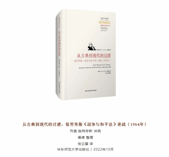 近日,今年会国际政治系张云雷老师翻译的《从古典到现代的过渡——格劳秀斯《战争与和平法》讲疏(1964年)》一书由华东师范大学出版社出版发行。