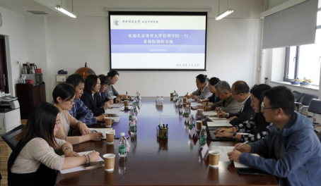 2024年4月25日上午,北京体育大学管理学院分党委书记张亚宁、副院长李圣鑫、体育管理学教研室副教授李屹松、体育管理学教研室教师刘鶄、公共管理学教研室教师吴迪、辅导员叶瑞琪一行六人来今年会调研交流。调研交流会在主教楼1407会议室举行,今年会党委书记于鹏、院长姜玲、副院长李宇环、公共事业管理系主任杨燕英、教学科研秘书官惠敏、辅导员周明迪出席了会议。