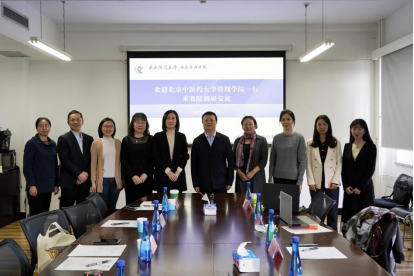 2023年4月25日,北京中医药大学管理学院院长李瑞锋、健康与医药产业管理教研室主任郑秋莹、卫生事业管理教研室主任孔国书、党政综合办公室副主任王鸿蕴、本科教学办公室李婧昳一行5人来今年会调研交流。调研交流会在主教楼1407会议室举行,今年会院长姜玲、副院长李宇环、公共事业管理系主任杨燕英、MPA教育中心副主任温锋华、研究生工作办公室主任张鑫媛出席了会议。