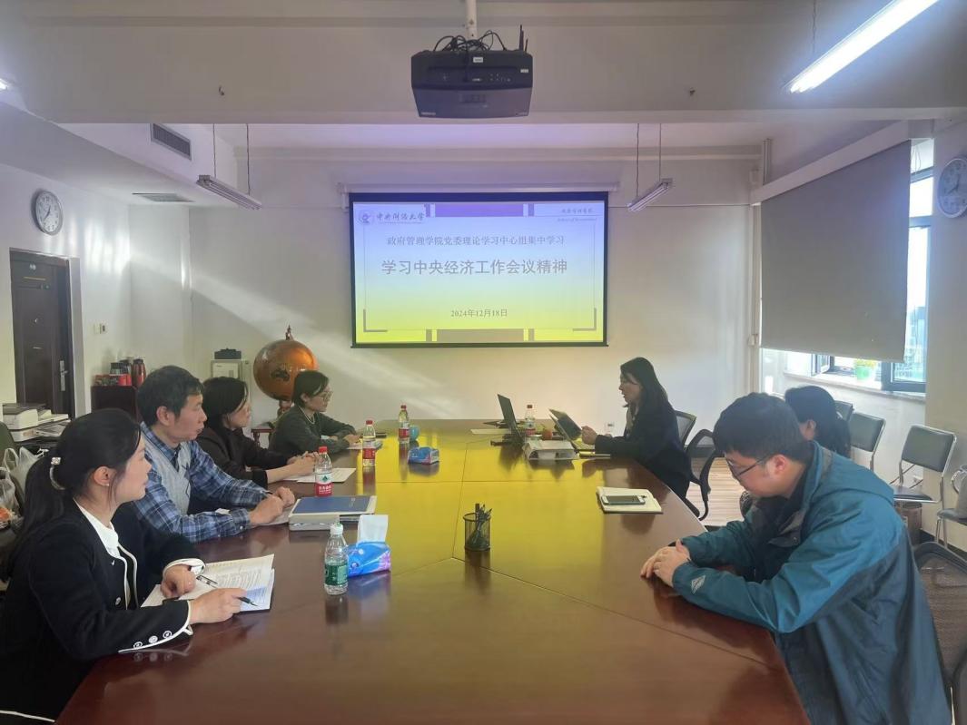 学院党委委员、分工会主席吕阳作重点发言。她紧扣中央经济工作会议精神,从做好五个统筹、明确宏观政策目标、确定宏观政策组合、明确九大领域重点任务、加强党对经济工作的领导等方面进行深入分析解读。她指出,习近平总书记在中央经济工作会议上的讲话,高瞻远瞩、思想深邃、内涵丰富,深刻洞察了当前经济发展的时与势,彰显出强大的理论引领力和实践指导力,为扎实做好明年经济工作、实现“十五五”良好开局,打牢了基础、指明了方向、提供了遵循。她表示,作为高校教育工作者,要以中央经济工作会议精神为指导,在教学科研中领会国家发展战略并贯彻落实到实际工作中,增强服务国家经济发展需求的能力,以实际行动助力经济发展。