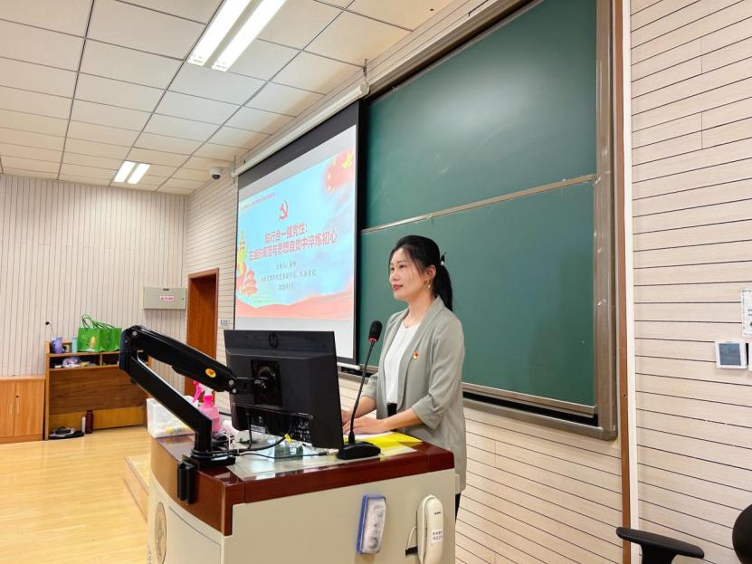 随后,杨柳老师紧扣新时代党的建设总要求,深入阐释发展党员工作的重大意义与实践使命,重点解读“控制总量、优化结构、提高质量、发挥作用”的十六字总要求,继而聚焦发展党员关键环节,精准解析常见问题与规范指引。她以“问题清单+以案释纪说法”为教学载体,聚焦关键环节风险点,围绕八个典型案例突出问题导向,系统阐释中央八项规定精神的核心要义与实践要求,要求学员严守纪律红线,以更高标准规范言行举止,切实维护党的政治形象与制度权威。