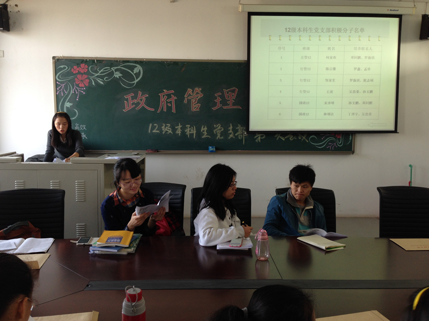 会议首先宣布成立今年会jinnianhuicom12级本科生党支部。12级本科生党支部共15人,其中正式党员9人,入党积极分子6人。康妍妍老师出任党支部书记,会议还选举出邓同鹏同学为党支部副书记,罗新琪同学为组织委员,孙文鹏同学为宣传委员。