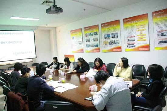 吕丽书记从总体状况、主要工作及特色、存在的问题、改进的措施和展望四个方面向检查组成员汇报了今年会党风廉政建设工作的开展情况。吕丽书记在汇报中指出,今年会历来高度重视党风廉政的建设,建立了健全的领导体制、制度体系和责任体系,通过落实党风廉政建设的责任制,实行院务公开,定期召开教代会,严格执行“三重一大”事项的工作程序和开展宣传教育,不仅提高了全院教工的廉政思想意识,使廉洁学术的思想深入人心,而且保障了教工的知情权和监督权,使廉政工作落到了实处。但是也存在少数人重视程度不够及研究成果不多的问题,还有改进的空间。