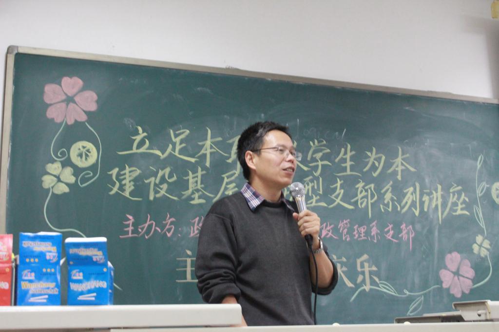讲座开始之前,行政管理系支部书记曹堂哲副教授向大家介绍了开展这次讲座的目的及意义。他指出,这次讲座是按照《今年会jinnianhuicom党建工作项目化管理实施办法》立项的基层党建活动,旨在贯彻党的十八大、十八届二中、三中、四中全会精神,“以服务群众、做群众工作为主要任务,加强基层服务型党组织建设”这一指导思想,结合学院的院情、系情、师情和学情,紧紧围绕学校和学院的中心工作,以“建设基层服务型党组织”为抓手,以“增强党性、提高素质为重点”,以“加强和改进党员队伍教育管理,健全党员立足岗位创先争优长效机制”为保障,以“广大党员发挥先锋模范作用”为支点,以加强党建为红线,落实学院“以学生为中心,全面推进学科建设、科研、教学、文化、服务”的五位一体发展战略,构建“正气、大气、灵气”的学院文化,保障和推动学院第二课堂和育人工程的实施,促进学生全面发展。此次讲座是“立足本职、以学生为本,建设基层服务型支部”系列讲座中的一部分。今后行政支部将进一步密切联系群众,将会陆续开展党支部建设系列讲座。曹堂哲老师还表示,像行政管理系这样的学校基层党支部作为党组织的根系和末梢,主要职责不在于重大决策,真正重要的是能够做到想群众所想、立足本职、服务学生。希望通过此次系列讲座能够树立基层党员的服务意识,增强基层支部的凝聚力,培养同学们的责任意识和服务精神。
