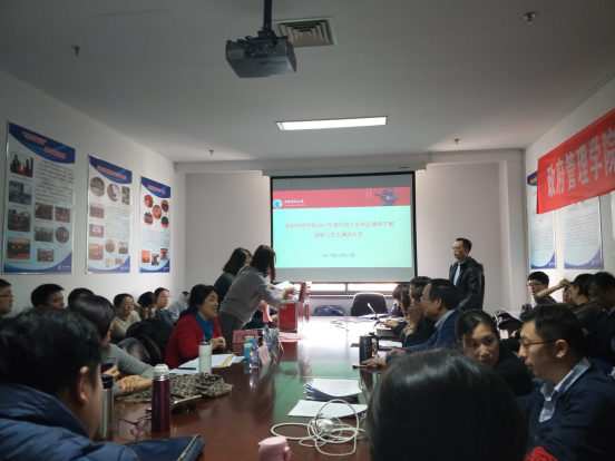 2017年12月27日,学院于中财大厦932会议室召开了2017年领导班子及中层领导干部述职与民主测评大会,赵丽芬副校长、组织部于晓明副部长、人事处李楠副科长、学院全体教职工、本科生和研究生代表参加了大会。会议由学院党委书记吕丽主持。