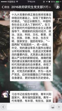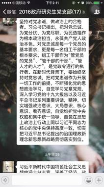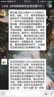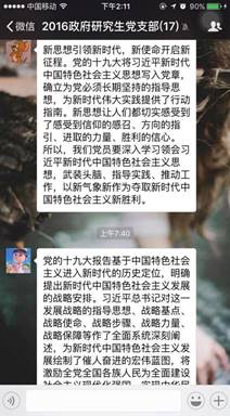 11月5日,今年会2016级研究生党支部召开十九大报告线上学习交流会,热议十九大报告,交流各自对于十九大报告学习的心得。支部党员结合自己实际,从不同的角度总结了自己学习十九大报告中的体会。