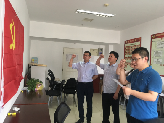 本次支部活动恰逢建党97周年前夕,全体支部党员教工欢欣鼓舞,学习研讨热情高涨。活动由支部委员柴铎主持,并邀请组织了本系党外教师代表刘慧老师参与。第一项活动为老党员重温入党誓词,在鲜红的党旗下,全体党员举起右手、握紧拳头,庄严宣誓。通过这样的形式,组织党员开展入党宣誓和重温入党誓词行动,让党员教工重温入党誓词时的庄严承诺和坚定决心,在党旗下接受心灵的净化和洗礼,牢记共产党员的政治责任和历史使命,不断保持共产党员的先进性,以更加饱满的热情投身教育工作,切实发挥共产党员教师的先锋模范作用,永葆共产党员教师的坚定理想信念和纯洁政治本色。宣誓后,支部委员张剑同志拿出准备好的材料,带领党员同志集体学习了《中国共产党章程》第七章“党的纪律”、《习近平总书记系列重要讲话读本(2016版)》第七章第七节“用铁的纪律维护党的团结统一”。