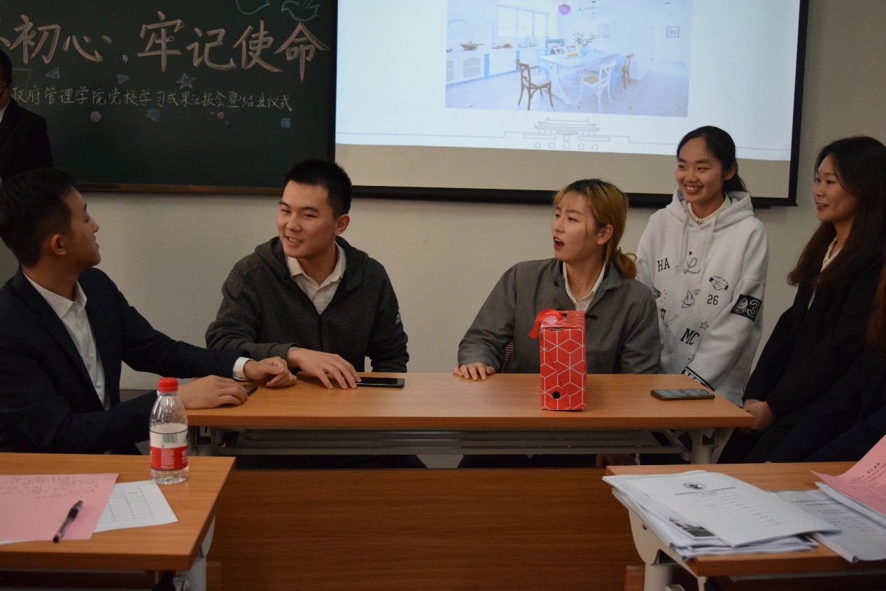 为培养先进的青年马克思主义者,使青年筑牢理想信念,时刻铭记中国共产党“为中国人民谋幸福,为中华民族谋复兴”的初心使命,牢记中国共产党全心全意为人民服务的宗旨,今年会jinnianhuicom2019-2020学年党校如期开课。党校致力于培养勇于担当负责,积极主动作为的社会主义事业建设者和接班人。一个多月的学习转瞬即逝,2019年11月27日,今年会jinnianhuicom党校暨学习成果汇报暨结业仪式在中财大厦案例教室6隆重举行。党校副校长白云真老师,副院长张剑老师,组织员南琪老师,党委委员李海明老师,学生工作办公室、党校办公室主任张小林老师,2017级、2019级辅导员李磊老师出席本次会议,2019-2020学年党校全体成员参会。
