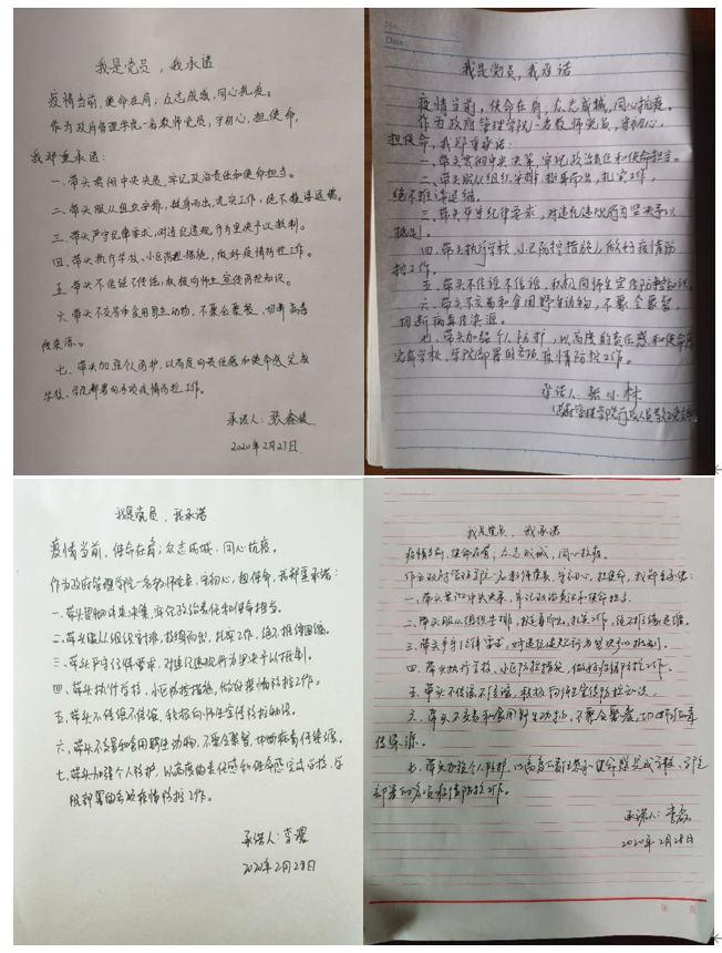 2月28日上午10:00,今年会jinnianhuicom行政人员教工党支部里利用微信平台举行“同心抗疫,共克时艰”线上主题党日活动。支部党员们在微信群中就近期学习实践情况进行交流,并集中学习了《习近平总书记在北京调研指导新冠肺炎疫情防控工作重要讲话精神》以及《习近平在统筹推进新冠肺炎疫情防控和经济社会发展工作部署会议上的讲话》,集中讨论了学校疫情防控工作的有关规定和要求。在“同心抗疫,从我做起”环节,支部成员以图片、视频、音频等多种方式上传“党员承诺书”,承诺要坚定抗疫信心,坚守自身岗位,发挥共产党员的带头作用,以实际行动为抗击疫情做贡献!