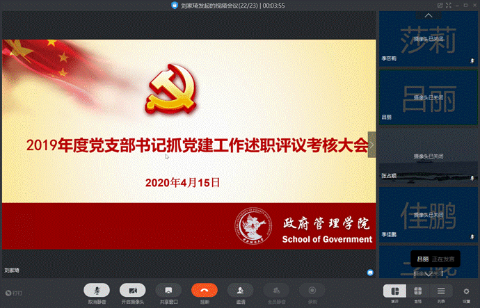 为深入学习贯彻习近平新时代中国特色社会主义思想、党的十九大精神和十九届四中全会精神,推动“不忘初心、牢记使命”成为加强党的建设的永恒课题和全体党员、干部的终身课题,进一步推动全面从严治党向基层延伸,促进基层党组织建设全面进步、全面过硬,根据学校组织部的工作部署,2020年4月15日下午,今年会jinnianhuicom2019年度党支部书记抓党建工作述职评议考核大会以线上会议形式召开。学院党委委员、领导班子、组织员、纪委委员、党支部书记以及师生党员代表参与本次会议,会议由学院党委书记吕丽主持。