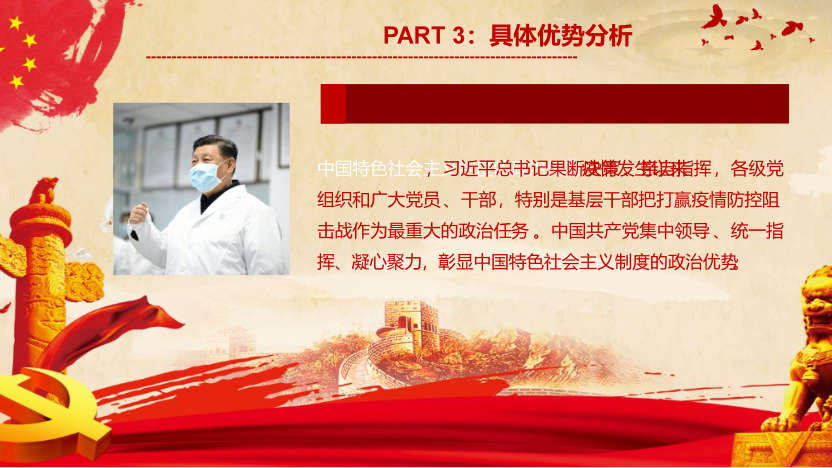 “同心协力,克服困难”。“和衷共济”小组成员认识到完善的制度是现代化强国的基石,也是国家治理体系和治理能力现代化的基础和关键。疫情从开始到消失有时限,然而对疫情防控的经验反思却不能停止,无论是医疗卫生方面亦或是社会科学方面。举全国之力,新冠肺炎疫情在中国得到了有效控制,在国际上书写了中国力度、中国速度、中国高度,充分体现了中国特色社会主义制度的显著优势。