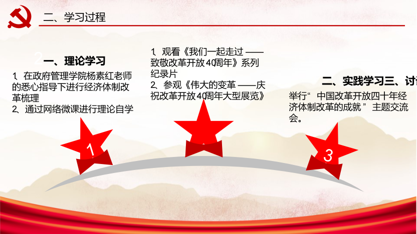 “星星之火,可以燎原”。“燎原”小组成员通过对改革开放四十年经济体制改革的系统学习,认识到中国在四十年间的经济飞跃在人类历史上是绝无仅有的壮举。作为新时代的青年大学生,必须在追随党的领导的同时不断加强自己的科学文化素养、思想道德素养,党性修养,才能真正成为社会主义事业的接班人。作为一名要求进步的大学生,将自己的个人理想与我们伟大中国梦结合起来。以小我之青春,筑中国之辉煌,无愧于时代和人民。