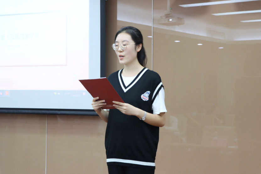 结业仪式上,入党积极分子学员代表曾琦杰和发展对象学员代表周明迪分别进行发言。曾琦杰同学表示在今后的学习生活中要做到理论学习要与理论专业相统一,坚持组织培养与个人努力相统一,思想上入党要与组织上入党相统一。周明迪同学表示在本次党校学习中用党的理论思想武装了头脑,在学习过程中提升了学习能力,要在以后的学习生活中不忘初心,切实为他人服务。