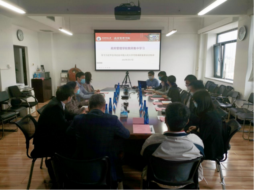 李宇环首先传达学习习近平总书记视察中国人民大学重要讲话精神,同时指出全院师生要持续深入学习贯彻习近平总书记重要讲话精神,不折不扣将总书记的要求贯彻到学院各项工作的全过程、全方位,进一步落实立德树人根本任务,回应公共管理学科发展时代命题,引领青年学生奋发有为,以优异成绩迎接党的二十大胜利召开。