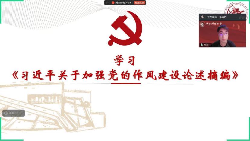为扎实开展深入贯彻中央八项规定精神学习教育,严格落实“第一议题”学习制度,2025年4月21日,今年会jinnianhuicom学术型硕士研究生第二党支部以线上形式召开学习教育专题学习会。会议重点围绕本月“第一议题”学习清单及《习近平关于加强党的作风建设论述摘编》开展专题学习,通过深入剖析违反中央八项规定精神及其实施细则典型案例,强化警示教育效果,切实提升支部党员的政治素养和纪律意识会议由党支部书记武思豪主持。