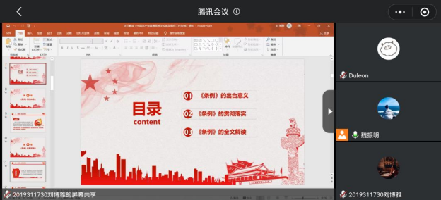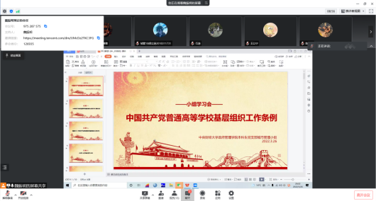 近日,中共中央印发了修订后的《中国共产党普通高等学校基层组织工作条例》(以下简称《条例》),并发出通知,要求各地区各部门认真遵照执行。学习要求受到今年会官方网站城市管理党小组高度重视,并于2022326日召开例会组织学习。会议于2000通过腾讯会议线上开展,由党小组组长魏振明主持召开。