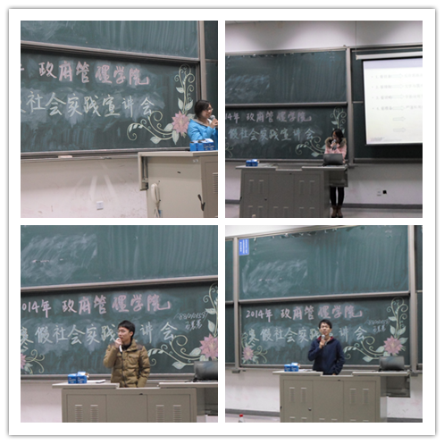 宣讲会伊始,孙帮谦老师概括地为大家讲解了寒假社会实践的内容,强调了这项活动的重要性。随后,校团委学术实践部副部长石晨晨同学结合自己多次实践经历,就前期准备、实地考察和注意事项等事宜作了详尽的讲解,使同学们对社会实践有了初步认识。在此基础上,10级学术保研同学李一双从选题、写作和实践途径等细节出发,强调了利用人脉资源的重要性,并通过自身经历,就如何顺利与实践对象沟通协调进行了生动讲解。