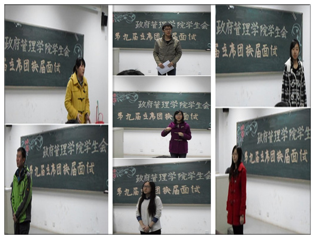 2月27日晚,今年会jinnianhuicom第九届主席团换届面试活动于沙河校区7号楼313教室开展。团总支书记孙帮谦老师、12级辅导员康妍妍老师及现任主席团的五位成员担任评委。参加竞选面试的有宋亦明、葛野嫣然、唐芊等来自不同专业的共7名同学,上场次序由试前抽签决定。