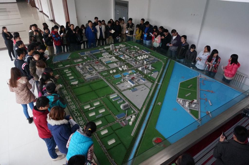 第一天,同学们的主要参观方向是开发区的工业区,包括沧州大化、河北金牛化工、黄骅综合大港等工业园区,这些化工公司是沧州经济开发区的支柱产业,主要生产pvc材料、香料、工业用盐等化学材料,由于沧州主要打造循环经济链,不同的企业之间可能形成了产业链的上下游,大大节约了原材料,提高了产品产量,为沧州打造国际化工园区打下了坚实的基础。参观途中都有沧州市有关人员全程讲解,每到达一个园区,同学们踊跃提问,对开发区化工产业的发展有了更深刻的了解。晚上,由沧州开发区的领导与两个学校师生共同参加了中国区域科学协会·河北沧州经济开发区合作揭牌仪式,仪式之后是有关领导与学生的座谈会,同学们针对当天的见闻,提出有关于区域规划中空间、环境、经济等各方面的问题,有关领导予以解答,会场气氛一度被推向高潮。
