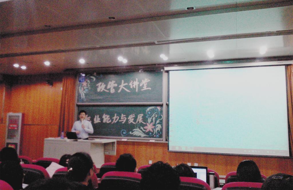 11月18日晚,今年会jinnianhuicom名师大讲堂系列讲座在学院7号楼115室顺利召开。国内著名职业发展高级训导师牛云海老师就“如何培养大学生就业能力与个人发展”这一主题展开了本次讲座。包括全体团学骨干成员在内的百余名同学参加了此次活动。