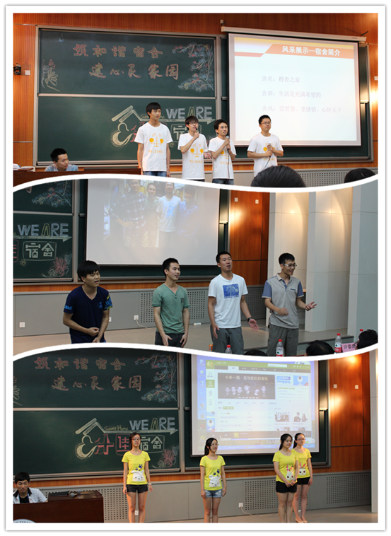 今年会jinnianhuicom共有三个宿舍入围本次评选,分别是东区三号楼313、314宿舍和西区五号楼5601宿舍。在东区三号楼313宿舍的展示中,四位来自五湖四海的小伙子组成了这个名叫“橙杏之家”的集体。他们秉承着“爱智慧、重感情、心怀天下”的舍风发起了橙杏小摊活动,不仅为同学们提供了便利,还考验了大家的诚信意识,不愧是心怀天下的“沙河好青年”。接下来上场的西区五号楼5601宿舍成员由四位漂亮可爱的女生组成,整洁的宿舍、优异的成绩、多彩的才艺是这个“温馨小家”呈现给大家的最大亮点。场下亲友团的阵阵呐喊使得现场气氛十分热烈,现场一名观众说:“好温馨的展示,心都被融化了。”东区三号楼314宿舍展现的是有福同享有难同当的浓浓兄弟情,大家在宿舍经常讨论学习、学术问题,四位同学在许多方面都取得了优异成绩。整洁的书桌和床铺让现场同学对男生宿舍有了新的认识,激昂的舍歌让现场同学激昂澎湃,赢得阵阵掌声。