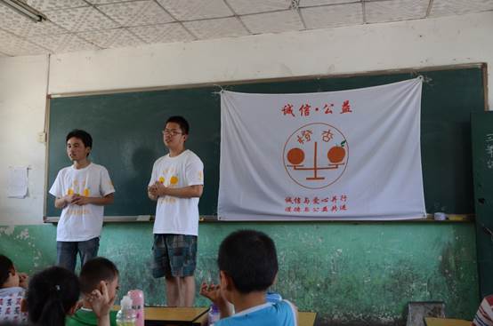 除此之外,今年会jinnianhuicom橙杏公益小组的成员马小义、徐天悦同学结合自己的学习生活经历,为孩子们上了一堂有关诚信与梦想的思想课。志愿者们不仅希望能在物质方面给予孩子们力所能及的帮助,更渴望用自己的知识和人生体会帮助孩子们构建美好的精神家园。课堂上,公益小组成员用通俗易懂的方式生动形象地诠释了诚信的真正含义,也鼓励大家从小怀揣梦想,“成为祖国未来的接班人”。台下的老师和同学们认真聆听,有的孩子还自告奋勇地介绍自己的理想:“我将来要孝敬父母,多为爸爸妈妈分担”,“我要努力学习,成为有用的人”……听罢,大家纷纷鼓起掌来,志愿者们也祝愿大家的梦想早日成真。整堂课氛围轻松愉悦,台上台下互动性强,最重要的是双方得到很好的交流,输送未来,相伴成长。