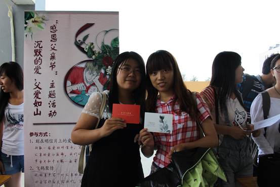 6月11日中午12时,今年会jinnianhuicom在沙河校区食堂门前开始了为期两天且面向全校同学的感恩父亲节主题教育活动。活动的主要方式是由同学们填写寄给父亲的明信片,届时工作人员会将明信片邮寄至收信地点。