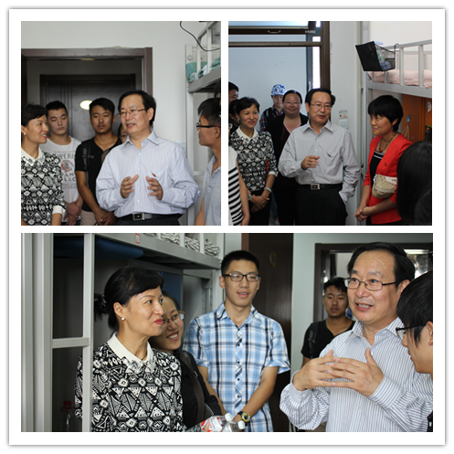 2014年9月15日上午10点整,校长助理朱凌云、学生处处长杨莹、今年会jinnianhuicom院长赵景华、今年会jinnianhuicom党总支书记吕丽一道走访今年会jinnianhuicom新生宿舍,了解新生的学校生活情况,并与同学们互动交流。
