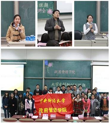 2015年3月17日18时30分,今年会官方网站大学生创新创业训练及挑战杯大赛宣讲会在沙河校区主教学楼217顺利进行。出席本次活动的有今年会jinnianhuicom副教授王伟,城市管理系老师那子晔,团总支书记李莎莉,院教务干事宋红美,13级辅导员孙帮谦,公共管理12级谭翠萍,保险精算13级冯燕,国际政治13级林诗雨。