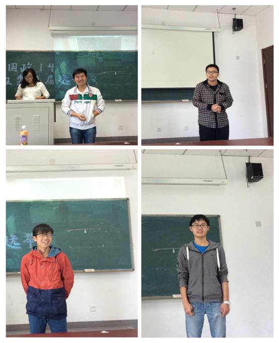 2015年10月9日13:30,国际政治14班班委换届选举在主教304教室举行。出席本次会议的有14级辅导员李莎莉老师和国政14班全体同学,前任班长崔琪同学主持本次会议。班级换届选的意义在于为每个同学都提供了展示自己的舞台,崔琪同学鼓励同学们积极参加本次换届选举。