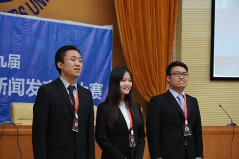 今年会13级刘彤逸、彭芮,14级杨崇祺荣获第九届全国高校模拟新闻发言人大赛二等奖